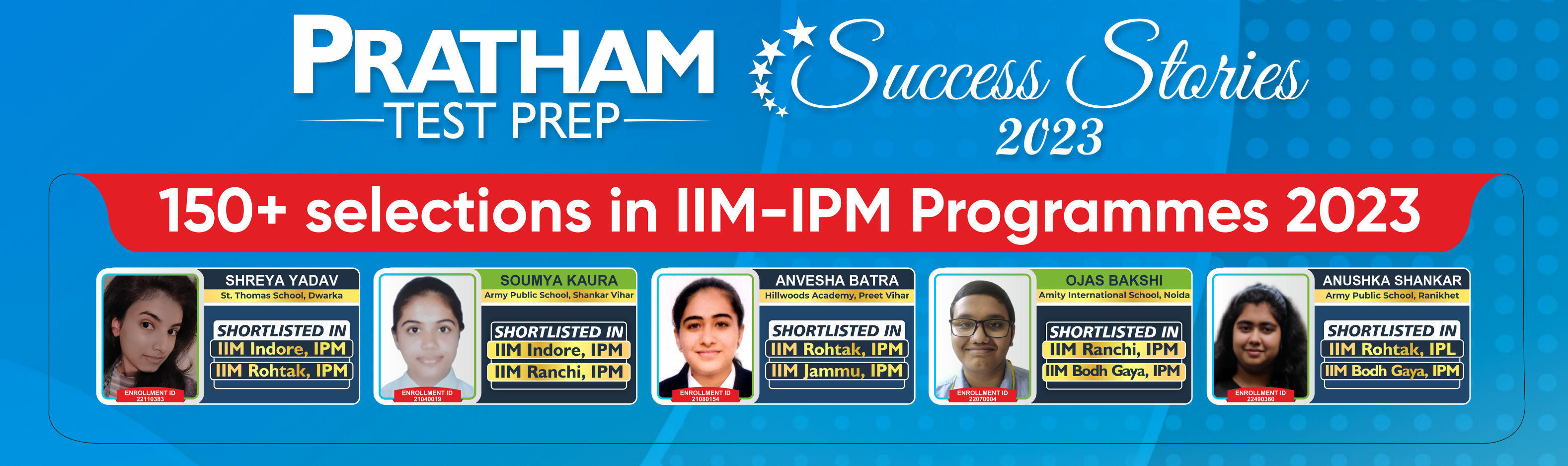 Two year program enrollment Id -17110043 I joined PRATHAM in class 11th as I was keen on giving DU JAT exam and make my career in business management. It has been a wonderful experience, here at PRATHAM The rigorous training, the excellent staff and the exhaustive